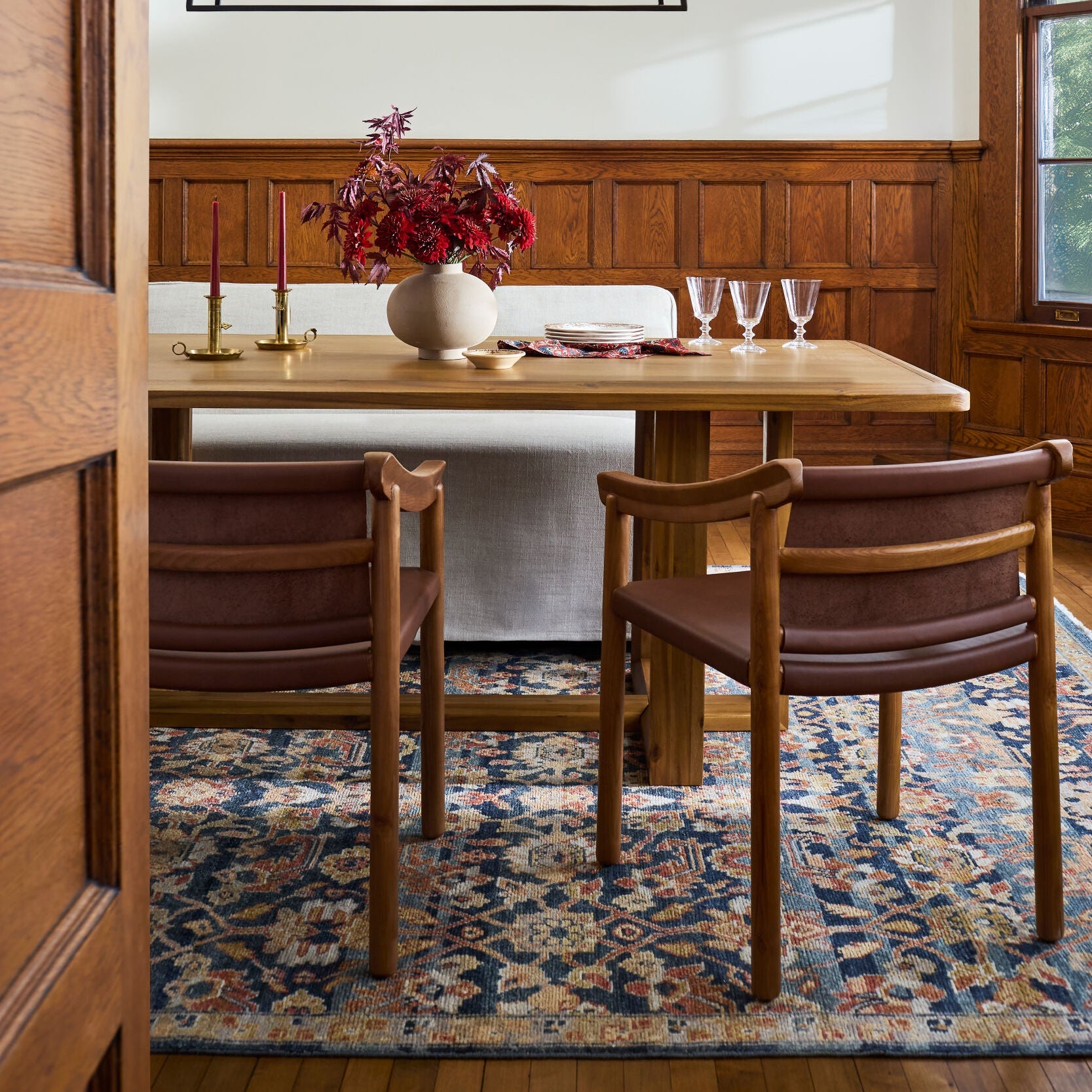 Add a pop of cozy charm to any room with the Annelisa Rug! Hand knotted from 100% wool, its navy, rust, and cream hues bring warmth and personality underfoot. Soft and durable, this playful piece invites you to relax, lounge, and enjoy a splash of colorful comfort every day.