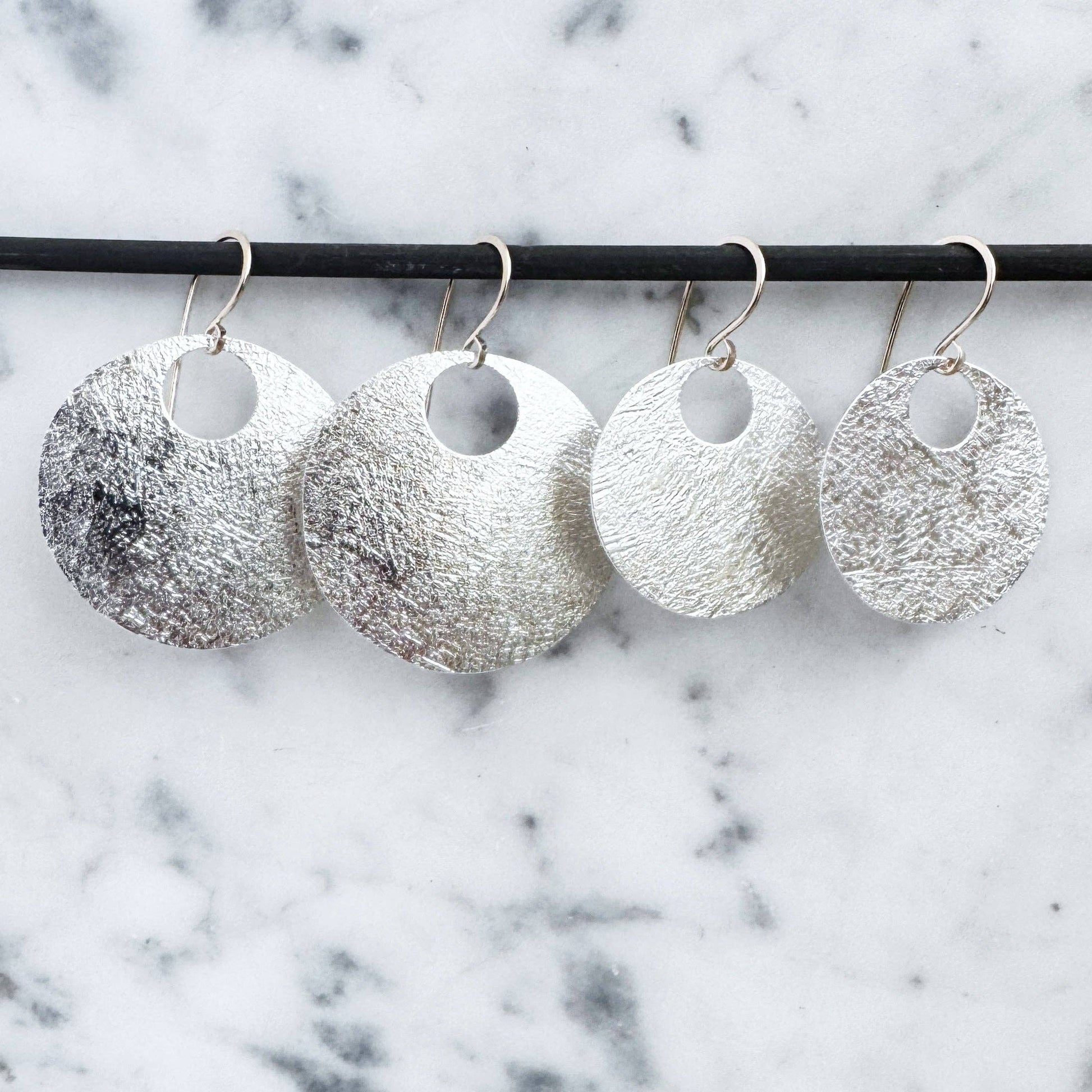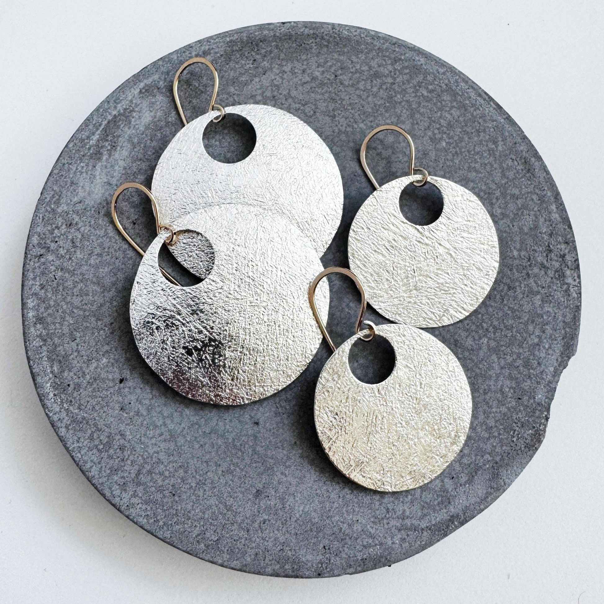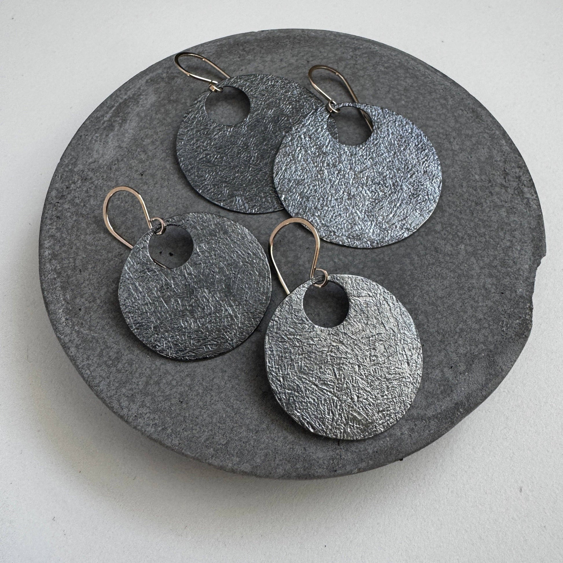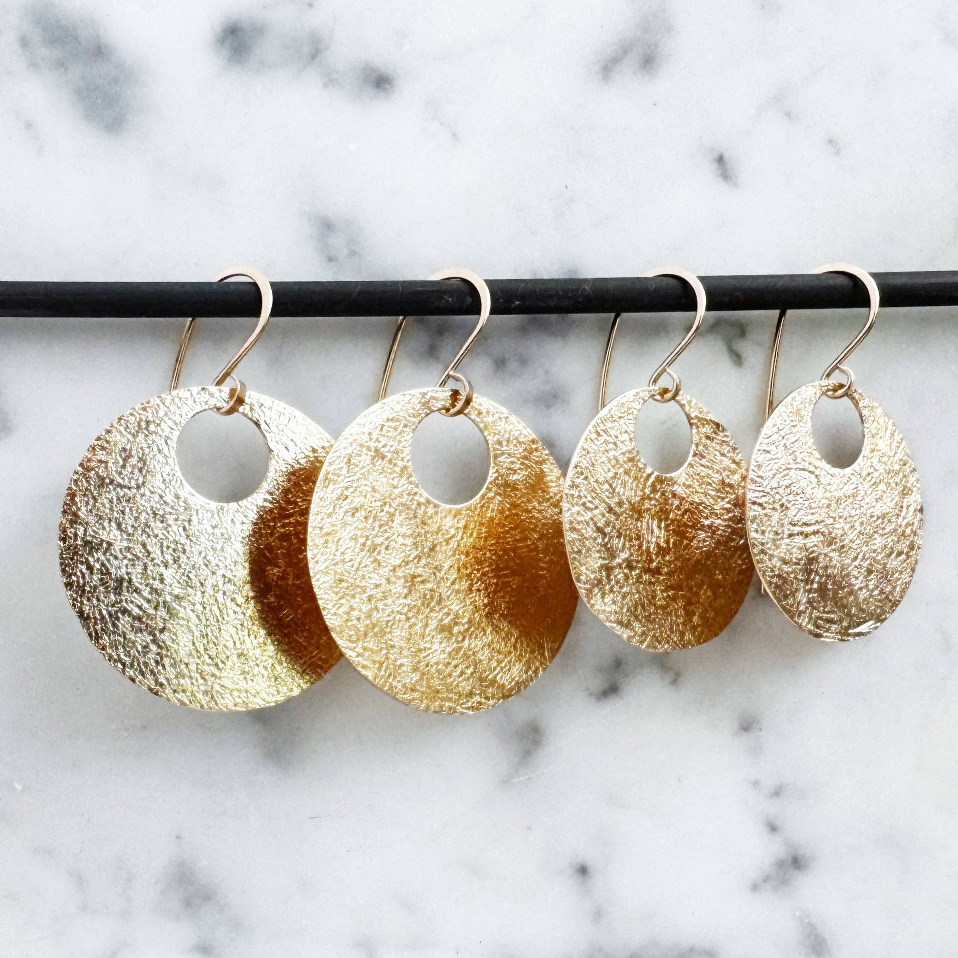 I always, always go back to basics and return to circles. I can’t avoid it. These classic, simple beauties will be something you reach for again and again. Hand textured with my trusty favorite hammer, these are available in two sizes and three finishes- bright or oxidized silver with 14k goldfill earwires or all 14k goldfill.