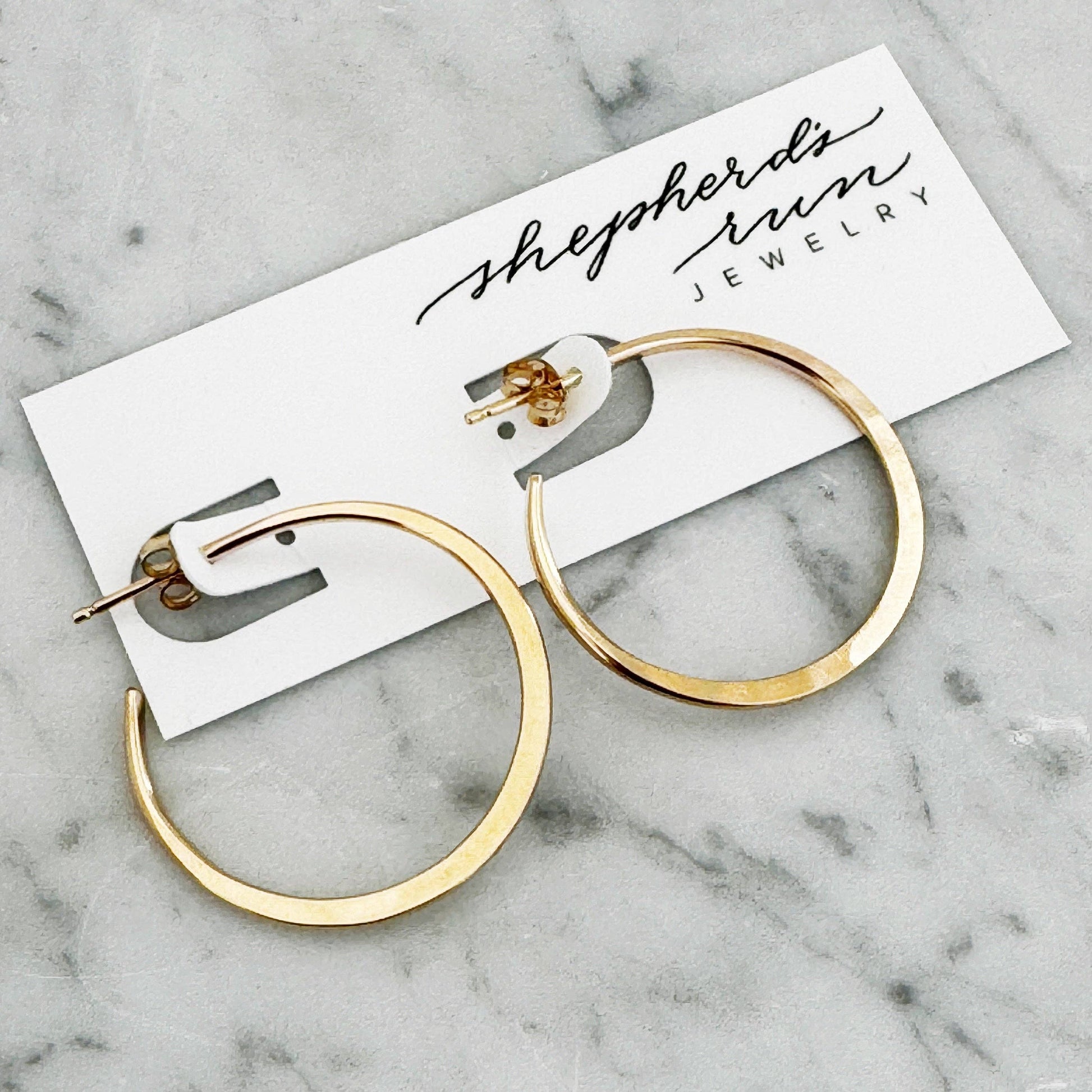 I dream about…Jeannie Hoops! Three sizes, two metals and a classic shape that you can’t go wrong with. These hoops are forged from either Argentium silver or 14k yellow Gold Fill, and are finished with posts and butterfly clutches in the same metal as the hoops. The hoops are forged with a gentle taper to lend form and elegance to this seemingly simple circle hoop.